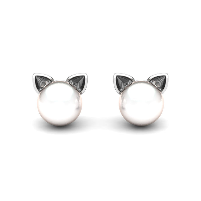 Kitten Pearl Studs | Sterling Silver