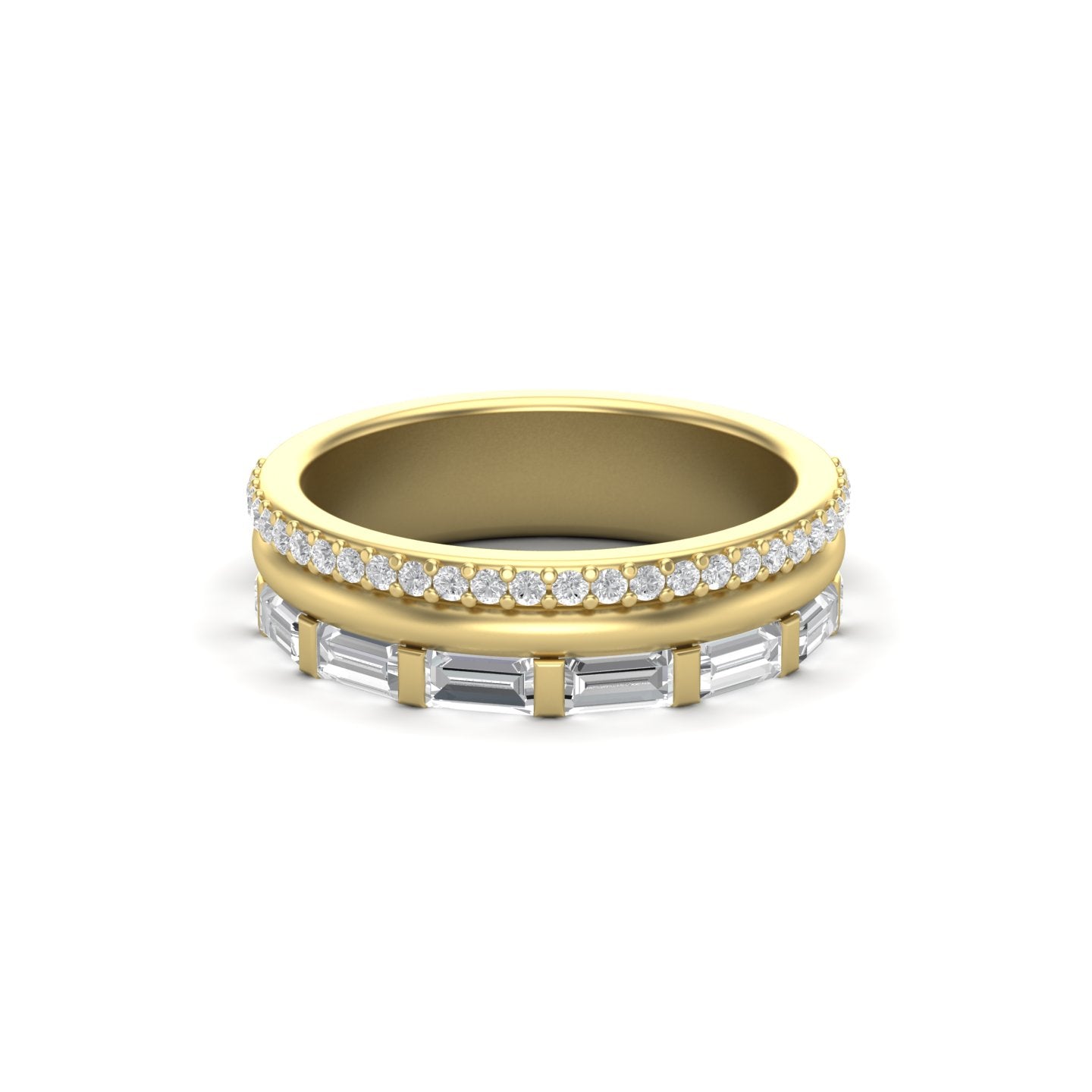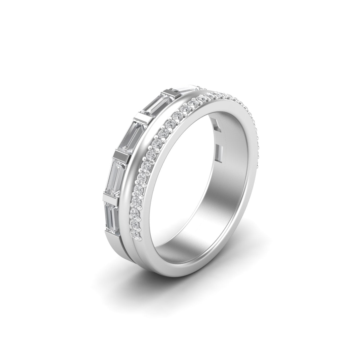 - Set with alternating round and baguette lab simulated diamonds for refined brilliance